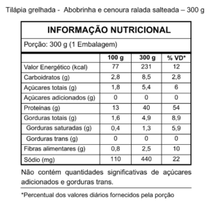 Tilápia grelhada – Abobrinha e cenoura ralada salteada – 300 g